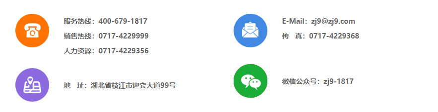 服務(wù)熱線:4006791817 人力資源部:0717-4229356 郵政編碼:443200 E-mail:zj9@zj9.com 地址:湖北省枝江市迎賓大道99號(hào) 鄂ICP備05003662號(hào)-1