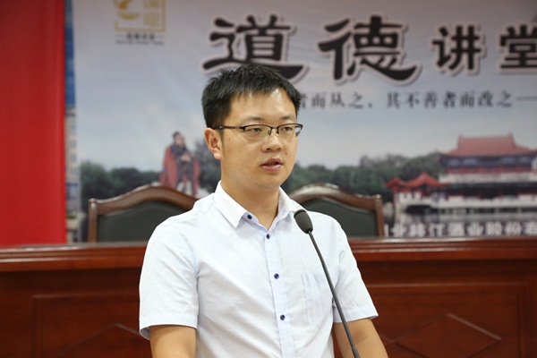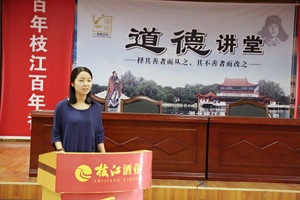 一滴酒香承載一個品牌夢,一個品牌崛起一座文明城。枝江市被授予“中國白酒名城”稱號,可以說枝江酒功不可沒。“讓枝江酒成為中國歷史文化名酒并享譽全球”,這是枝江酒業(yè)的愿景,也是每一個枝江酒業(yè)人的夢想與期盼。此次“道德講堂”活動共分為六個環(huán)節(jié),分別是“唱歌曲、看短片、誦經(jīng)典、講故事、談感悟、提建議”。